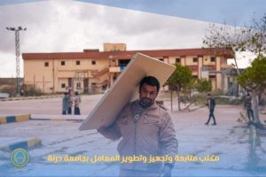 وبحضور السيد (الكاتب العام) والسيد (الوكيل المساعد لفرع القبة) والسيد (د.مدير مكتب الجودة وتقييم الأداء) تم يوم الأربعاء الموافق 2024/01/24م الانتهاء من تزويد كليات (العلوم – الموارد الطبيعة وعلوم البيئة) بفرع القبة من الاثاث المعملي والبدء في تزويد كليات الهندسة والتربية القبة.