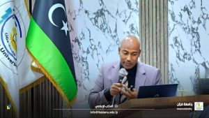 10- مشاركة بعنوان (استراتيجيات الدعم وأثرها في الاقتصاد المحلي) إعداد وتقديم.د. إبراهيم المهدي أحمد وكيل الشؤون العلمية بجامعة فزان.