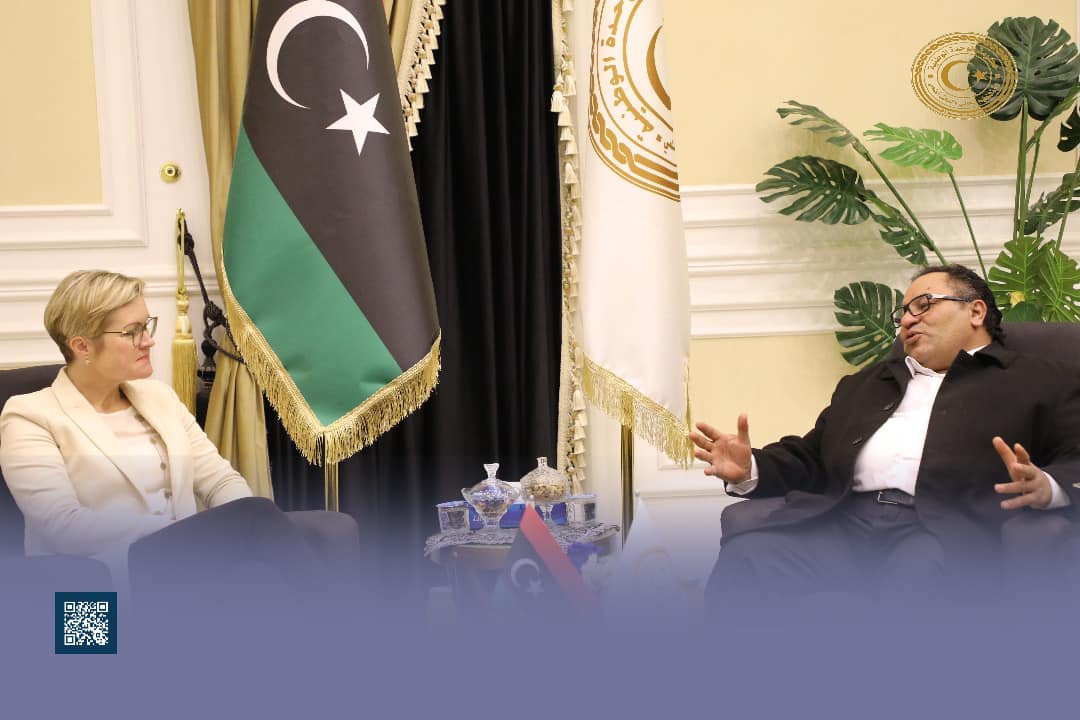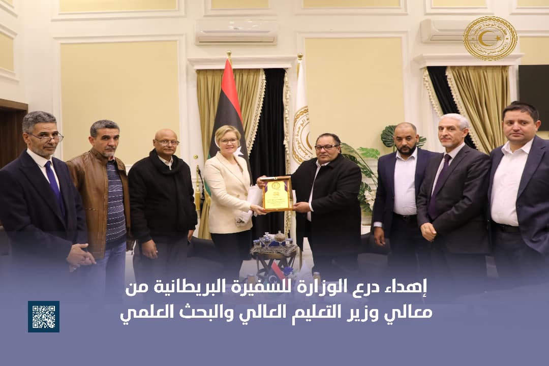 في اطار التواصل المعرفي بين بلدنا وبلدان العالم الخارجي معالي الوزير الدكتور عمران القيب استقبل بعد منتصف نهار اليوم سعادة السفيرة البريطانية لدى ليبيا التي سلمت معاليه دعوة للحضور والمشاركة في مؤتمر التعليم الدولي المقرر إقامته بلندن منتصف العام الحالي وحضر اللقاء رئيس جامعةسرت والكتاب العامون لجامعات درنة والجفرة ونالوت والمستشار الأكاديمي ومدراء مكاتب شؤون الوزارة والتعاون الدولي وتمكين المرأة بالوزارة، وكان هذا اللقاء مناسبة لتأكيد التعاون المشترك في مجال التعليم العالي والبحث العلمي بين البلدين وفي ختام اللقاء قدمت للضيفة هدايا تذكارية.