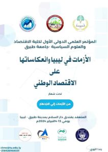 جامعة صبراتة تشارك في المؤتمر الدولي الأول الموسوم بعنوان ( الازمات في ليبيا وانعكاساتها على الإقتصاد الوطني) الذي تنظمه كلية الإقتصاد والعلوم السياسية جامعة طبرق