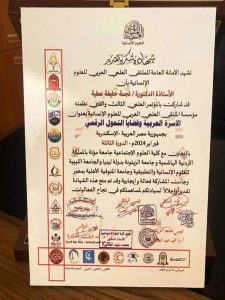في إطار التعاون بين جامعة الزيتونة، والمؤسسات العلمية، والثقافية الدولية، وتشجيعا من رئاسة الجامعة لأعضاء هيأة التدريس، والباحثين، اختتم الملتقى العلمي العربية المنعقد بمدينة الإسكندرية، أعمال مؤتمر (الأسرة والتحول الرقمي) وذلك يوم الخميس 15 فبراير 2024م، والذي كان برعاية جامعة الزيتونة، وجامعات عربية، وبمشاركة الأستاذ الدكتور نجمة خليفة عطية رئيس قسم اللغة العربية بكلية اللغات والترجمة، وبصفتها مديرا لمكتب ليبيا، ومتحدثا رسميا نائبا عن جامعة الزيتونة، حيث عرفت أ.د نجمة عطية بالجامعة : النشأة، والرؤية، والأهداف، والرسالة، ودورها في دعم العملية التعليمية داخل الجامعة، ومساهمتها المجتمعية وفق القيم والمبادئ الإسلامية. كما شاركت أ.د نجمة عطية بورقة بحثية تحت عنوان (فاعلية الألعاب الإلكترونية في تكوين ثقافة الطفل الإسلامية، وتنمية مهاراته اللغوية) وعلى هامش المؤتمر استلمت أ.د نجمة عطية درع الملتقى نيابة عن رئيس الجامعة، وكتيب المؤتمر والذى احتوى بين دفتيه تعريفا بجامعة الزيتونة، ورمز عرفان ووفاء تقديرا لما قدمه رئيس الجامعة .أ.د محمد عبد الصادق محمد من مجهودات لإنجاح أعمال المؤتمر ، تشجيعا للباحثين والأكاديميين للنهوض بأعمال بحثية دعما للحركة العلمية في البلاد العربية.