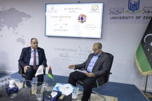 في إطار سعي جامعة الزاوية إلى ترسيخ ثقافة البحث العلمي وتعزيز التواصل بين مؤسساته، احتضن مكتب التعاون الدولي حوارية علمية بعنوان «الهيئة الليبية للبحث العلمي»، برعاية جامعة الزاوية وبدعم كريم من معالي وزير التعليم العالي والبحث العلمي الأستاذ الدكتور “عمران القيب”.